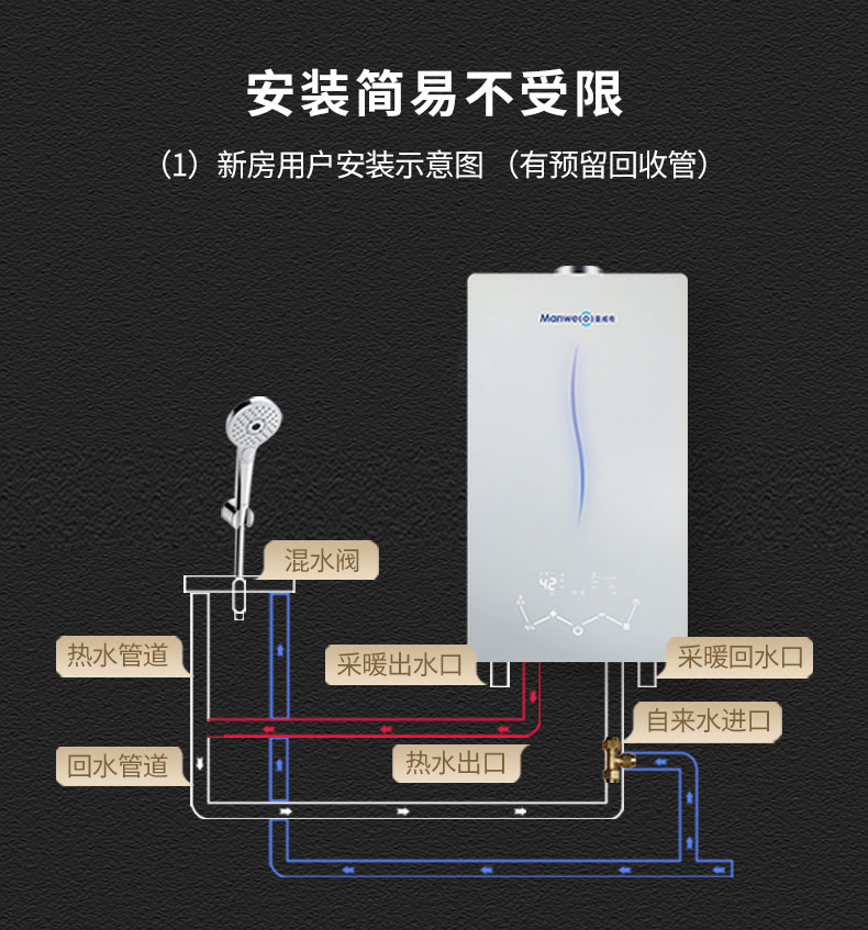 零冷水,分段燃燒技術(shù)感覺更寬頻即熱式沐浴體驗,水溫水壓穩(wěn)定具有氣候補償功能,舒適節(jié)能。全銅質(zhì)板換器采用蜂窩式分層設(shè)計,熱水交又對流,加熱更快更恒溫,體驗更舒適。21重安全保護功能全方位監(jiān)控運行狀況,安全無憂。